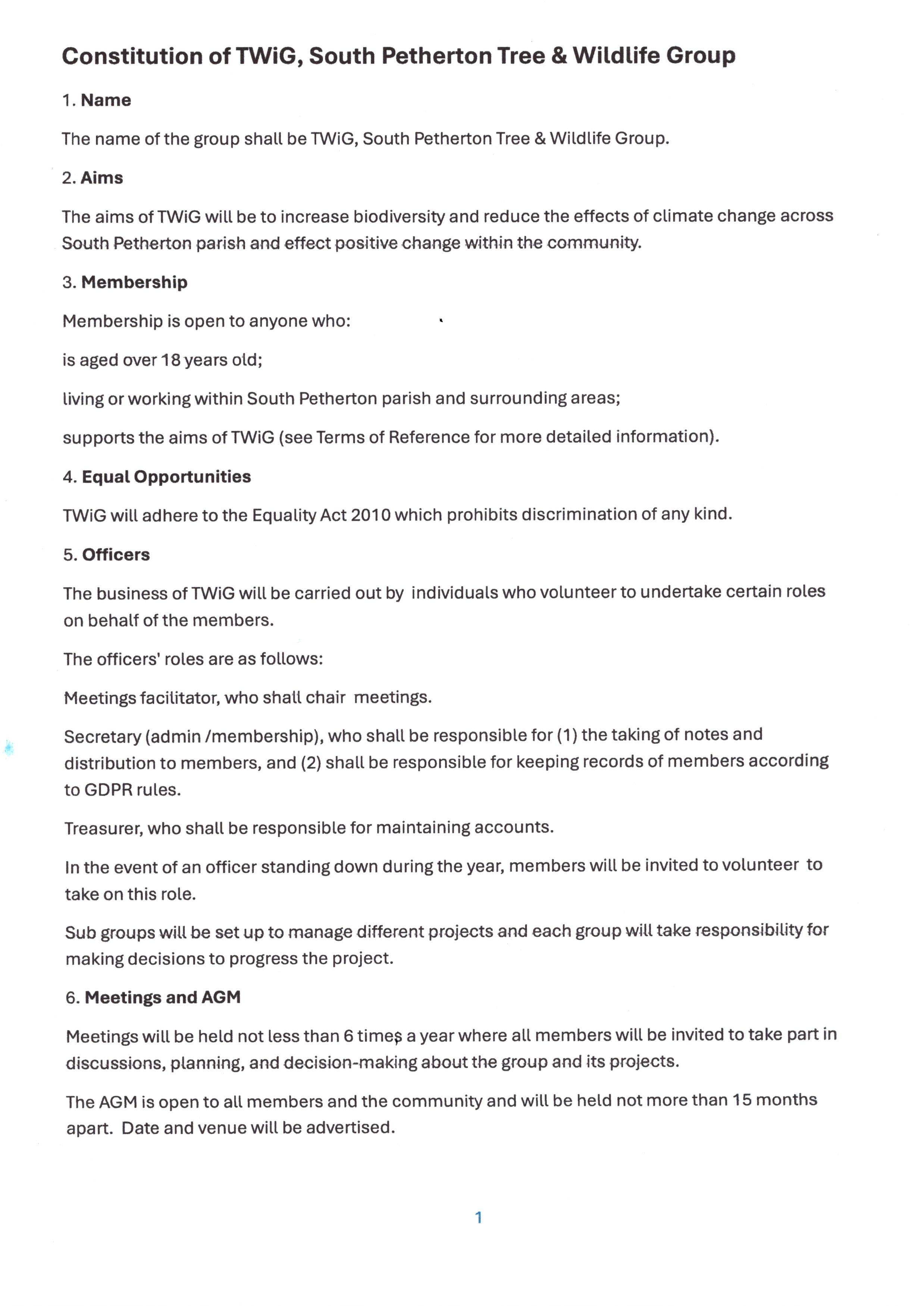 Terms of reference for South Petherton Tree and Wildlife Group (TWiG)
